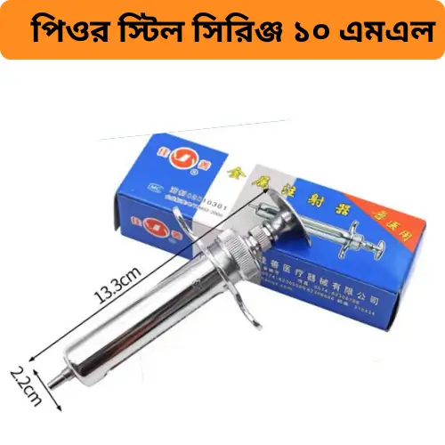 10ml Stainless Steel Metal Veterinary Syringe একটি উচ্চমানের পিওর স্টিল দিয়ে তৈরি টেকসই ও নির্ভরযোগ্য ভেটেরিনারি ইনজেকশন সিরিঞ্জ। ছোট ও নির্ভুল ডোজ প্রয়োগের জন্য এটি বিশেষভাবে উপযোগী। গরু, ছাগল, ভেড়া, শূকরসহ বিভিন্ন গবাদিপশুর টিকা ও ওষুধ নিরাপদভাবে প্রয়োগের জন্য এটি খামার ও ভেটেরিনারি ক্লিনিকে ব্যাপকভাবে ব্যবহৃত হয়। মরিচা-প্রতিরোধী এবং পুনঃব্যবহারযোগ্য ডিজাইনের কারণে এটি দীর্ঘমেয়াদে কার্যকর সমাধান।