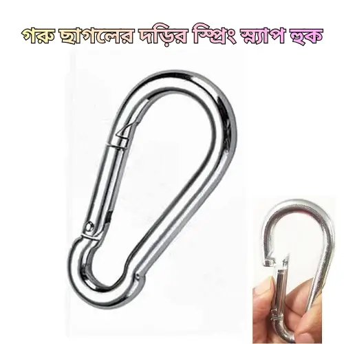 Spring Link Snap Hook হলো গরু, ছাগল, ঘোড়া ও অন্যান্য গবাদিপশুর দড়ি সংযোগ করার জন্য ব্যবহৃত একটি শক্ত ও নির্ভরযোগ্য মেটাল হুক। এতে স্প্রিং-লোডেড ক্লিপ মেকানিজম থাকে যার মাধ্যমে সহজেই দড়ি, চেইন বা হাল্টারের সাথে সংযোগ করা যায়। খামার ব্যবহারের জন্য এটি খুবই সুবিধাজনক, কারণ এটি দ্রুত খুলে-বন্ধ করা যায় এবং ভারী টান সহ্য করতে সক্ষম। গবাদিপশুর নিরাপদ নিয়ন্ত্রণ ও বাঁধার কাজে এটি একটি গুরুত্বপূর্ণ ফার্ম টুল।